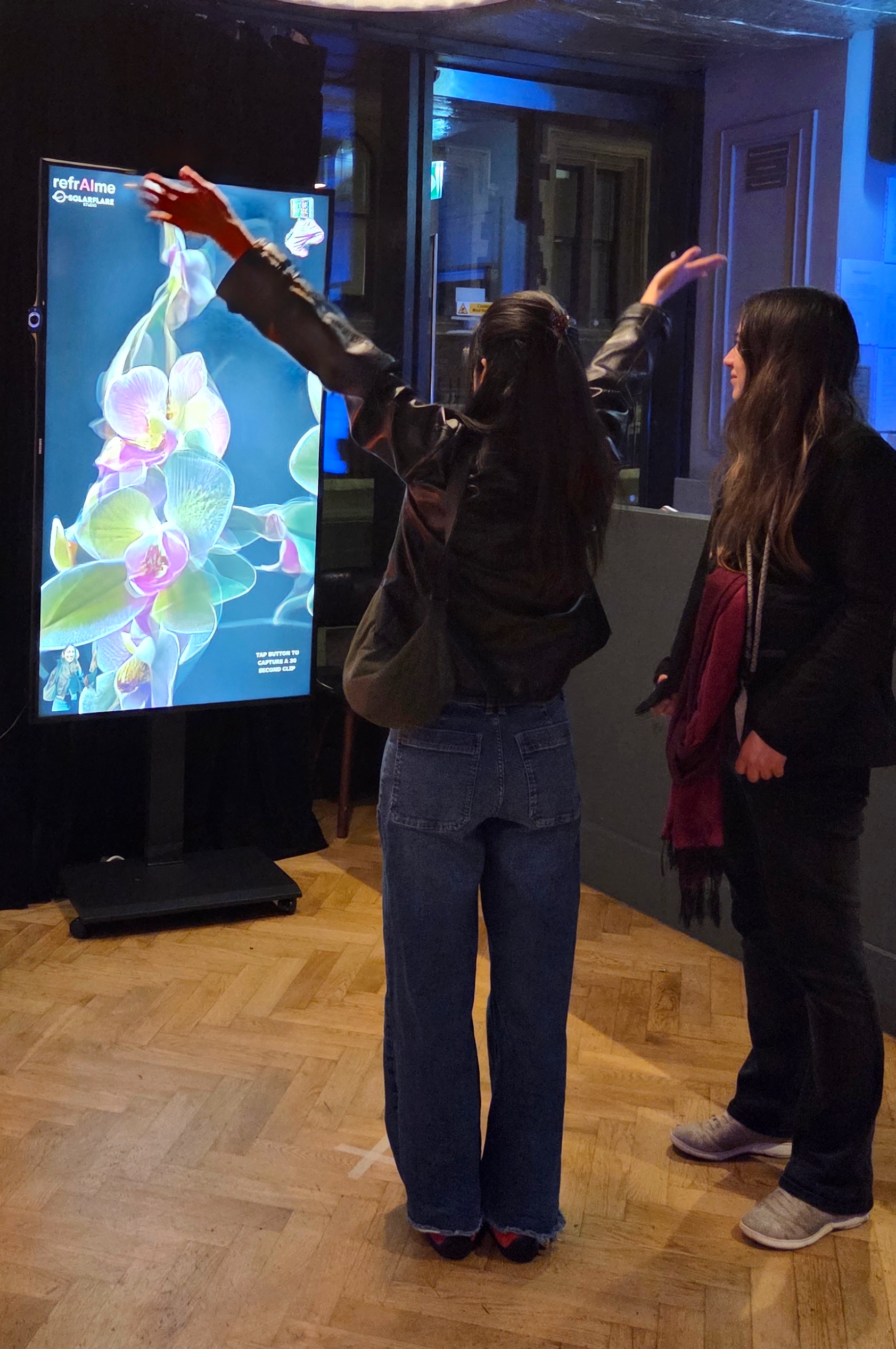 Using refrAIme, our proprietary AI mirror platform, the installation transformed visitors’ live reflections through generative design. Real-time vision algorithms and AI models reinterpreted each person’s image, shifting between visual styles that ranged from abstract colour fields to hyperreal portraiture.