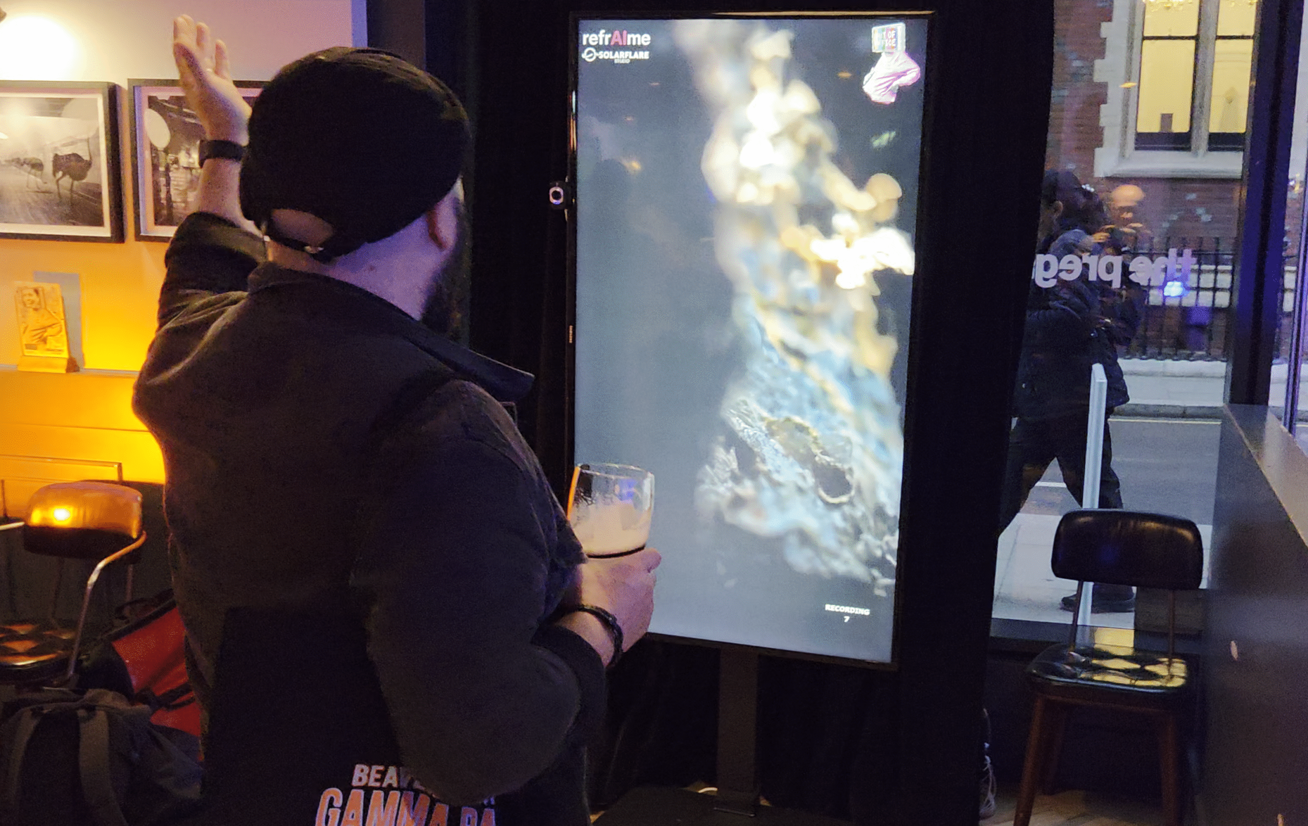 For the Out of Office Art Show in London, an interactive installation invited guests to become both muse and maker through refrAIme, a real-time AI mirror experience.